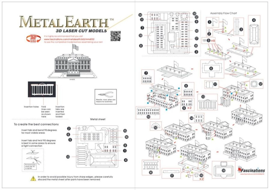 Metal Earth 3D puzzle Biały Dom to zachwycające doświadczenie dla wszystkich miłośników modelarstwa. Wysokopoziomowy detal i wyzwanie podczas składania sprawiają, że efekt końcowy będzie urzekającą dekoracją do Twojego domu lub biura.