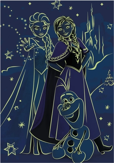 Neonowe fluorescencyjne puzzle świecące w ciemności przynoszą magiczną atmosferę motywu Krainy Lodu. Jaskrawe kolory przyciągają uwagę i ożywiają nocą.
