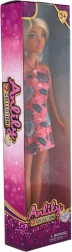Do wyboru są 4 warianty kolorystyczne sukienek z wyrazistymi nadrukami liści i kwiatów. Delikatny makijaż, gęste, jakościowe włosy oraz dopasowane białe buty podkreślają elegancki wygląd lalki. Wysokość 30 cm jest kompatybilna z szeregiem akcesoriów Anlily, więc możesz rozwijać modowe i wakacyjne scenariusze.