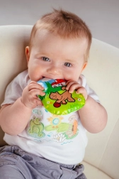 Poduszka wykonana jest z bezpiecznych materiałów bez ftalanów i jest certyfikowana dla dzieci od urodzenia. Do wyboru jest kilka uroczych motywów zwierzątek, które wspierają stymulację wzrokową i pierwsze poznawanie.