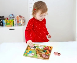 Zanurz się w piękny, spokojny dzień na farmie z naszą układanką. Produkt składa się z podstawy i siedmiu zdejmowanych elementów, co pozwala dzieciom ćwiczyć umiejętności sensoryczne i małą motorykę. Dzieci uczą się cierpliwości, odkrywając rozmaitość zwierzęcych przyjaciół.