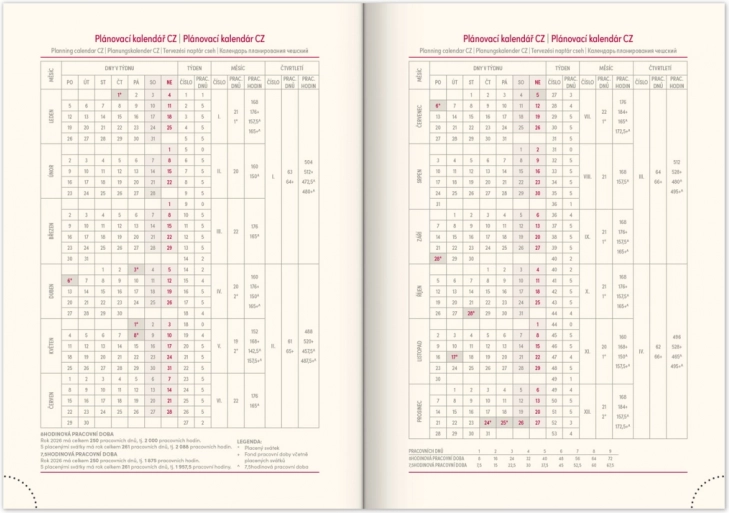 Z czesko‑słowackim kalendarium i dodatkowymi językami, takimi jak angielski, niemiecki, węgierski i rosyjski, ten terminarz jest niezbędnym towarzyszem w sprawach zawodowych i prywatnych.
