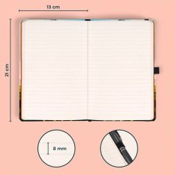 W środku znajdziesz 172 strony w linie z wysokiej jakości kremowego papieru na wszystkie Twoje pomysły i notatki.