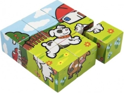 Klocki zawierają barwne obrazki zwierząt domowych, które przyciągają uwagę każdego dziecka i pobudzają wyobraźnię podczas zabawy.