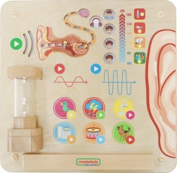 Edukacyjne tablice od Masterkidz pomagają dzieciom rozwijać różne umiejętności jednocześnie. Ta tablica uczy dzieci poprzez ciekawe tematy o funkcjonowaniu w społeczeństwie i poznawaniu otaczającego świata. Specjalne zadania, takie jak dotykanie scen i słuchanie odpowiednich dźwięków, są kluczowe.
