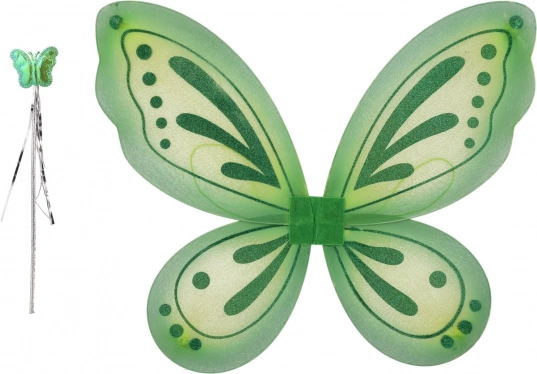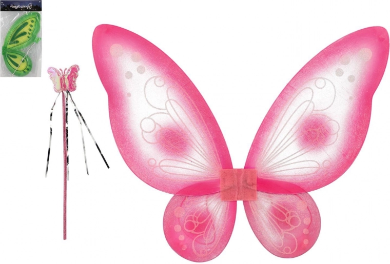 W skład zestawu wchodzi ozdobna różdżka z motylkiem i wstążkami, która idealnie dopełni strój małej wróżki lub motyla.