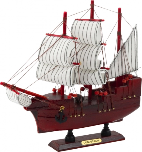 Ten elegancki dekoracyjny model trójmasztowca w kolorze burgundu jest doskonałym dodatkiem do każdego wnętrza. Jego detale i jednolita konstrukcja przyciągają uwagę i nadają mu historyczny charakter.