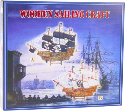 Model trójmasztowego żaglowca w stylu pirackim zachwyci każdego miłośnika morskich przygód. Zaprojektowany na wzór legendarnych korsarskich okrętów z XVII i XVIII wieku, ten model oferuje naturalny, drewniany kadłub z bocznymi imitacjami dział oraz wyrazistą linią rufy i dziobu. Czarne, płócienne żagle z nadrukami czaszki i skrzyżowanych piszczeli oraz pirackie bandery nadają statkowi nieodparty, charakterystyczny wygląd, przywołujący wspomnienie morskich rabusiów i legendarnej wolności na otwartym morzu.