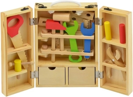 Odkryj kreatywny świat z tym drewnianym zestawem narzędzi. Idealne dla dzieci, które uwielbiają odkrywać i tworzyć.
