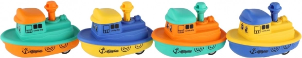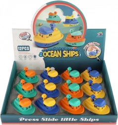 Naciśnij komin, a łódeczka dzięki napędowi ciernemu płynnie ruszy. Świetna interaktywna zabawa bez baterii.
