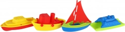 Ten praktyczny zestaw zawiera cztery plastikowe łódeczki w różnych kształtach i kolorach, w tym żaglówkę i motorówki. Łódeczki są lekkie, trwałe i dobrze leżą w małych dziecięcych dłoniach. Dzięki pływającej konstrukcji są idealne do wanny i dziecięcego baseniku.