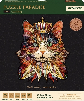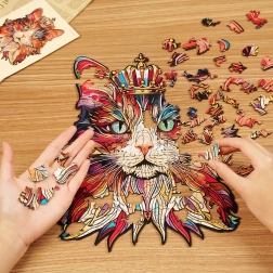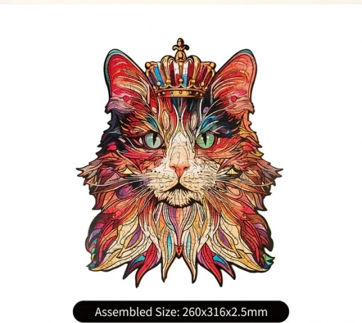 Wejdź do świata artystycznego układania z drewnianym puzzlem Koci Król. Każdy element jest starannie wycinany laserowo, co gwarantuje doskonałą precyzję i łatwość układania. Dzięki wysokiej jakości drewnu możesz cieszyć się tym dziełem raz po raz. Puzzle rozwijają Twoją motorykę małą i zapewniają zabawę dla całej rodziny.
