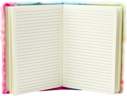 Zawiera 80 kartek w linii w formacie A5, co jest praktycznym rozmiarem, który łatwo zmieści się w plecaku, torbie lub na biurku. Miękka pluszowa okładka kusi do codziennego używania i jest także idealnym prezentem dla dzieci i młodzieży.
