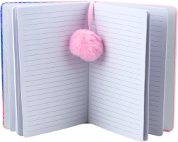 Ten unikatowy notes ożywi Twoją pamiętnikową kolekcję dzięki trójwymiarowemu efektowi, który przyciąga wzrok i pobudza wyobraźnię. Przednia okładka zdobiona jest błyszczącym różowym jednorożcem osadzonym na holograficznym tle, które wypełnia ruchome konfetti w formie gwiazdek. Dodatkowo w zestawie znajduje się zakładka zakończona miękkim pomponem – element jednocześnie funkcjonalny i dekoracyjny.