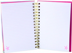 Wnętrze zawiera 90 kartek z różowymi liniami, co jest idealne do szkolnych notatek, kreatywnego pisania lub prowadzenia dziennika. Solidna spiralna oprawa ułatwia otwieranie i przekładanie kartek. Format A5 jest praktyczny do codziennego użytku – w szkole, w domu lub w pracy.
