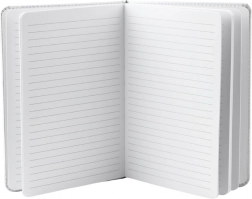 W środku znajdziesz 80 stron w linie do codziennego planowania, pisania dziennika lub notatek do pracy czy szkoły. Notatnik ma elastyczną gumkę zapobiegającą przypadkowemu otwarciu oraz wstążkę jako praktyczną zakładkę.