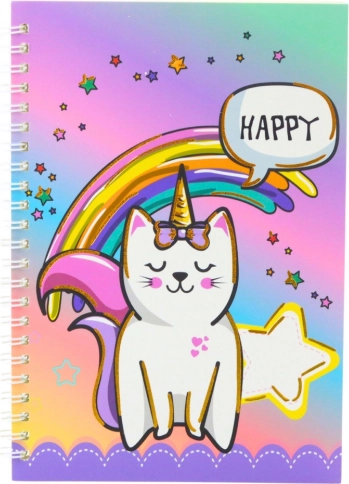 Ten kolorowy notes z motywem kota–jednorożca i tęczy to idealny towarzysz codziennych zapisków, notatek oraz dziecięcych tajemnic. Intensywne pastelowe kolory i zabawna ilustracja zachęcają do kreatywności i z pewnością wywołają uśmiech na twarzy.
