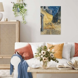 Temat 'Taras Kawiarni Nocą' inspirowany jest słynnym obrazem, który wprowadza do Twojego domu urok wieczornej atmosfery i artystycznego piękna.