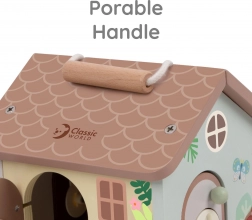 Domek jest zaprojektowany z uchwytem, który umożliwia dzieciom łatwe przenoszenie, idealny do zabawy w domu i w podróży.
