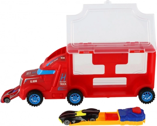 - Przezroczysta komora ładunkowa – autka zawsze na widoku i gotowe do akcji