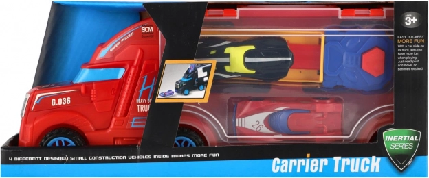 - Plastikowa ciężarówka–laweta z mini autkami