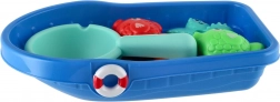 Niebieska łódeczka stabilnie się unosi i pomieści inne elementy. Dzieci mogą nią przewozić zwierzątka, nabierać wodę i wymyślać własne historie.