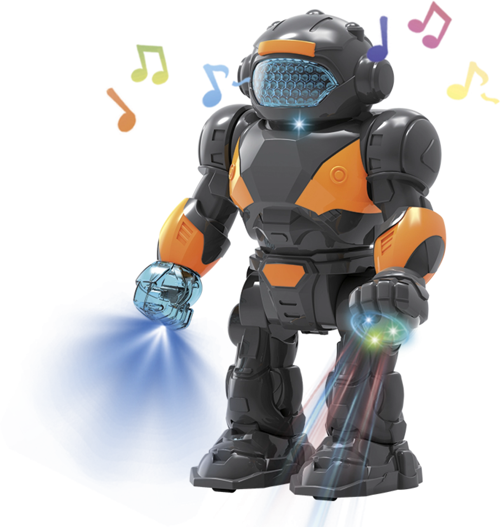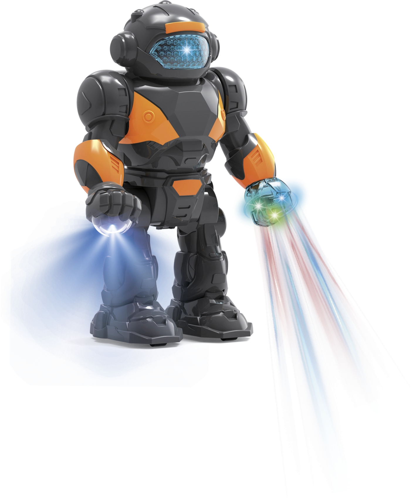 Zabawa z tym plastikowym robotem o wysokości 22 cm nie ma końca. Wystarczy proste uruchomienie, aby wprowadzić go do akcji i uczynić nieodłączną częścią każdej zabawy. Odpowiedni dla dzieci od 3 lat, ten robot może walczyć z intruzami lub chronić bazę kosmiczną. To świetna zabawka, która rozwija wyobraźnię u najmłodszych oraz ich zdolności motoryczne. Po aktywacji robot oferuje: