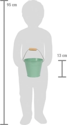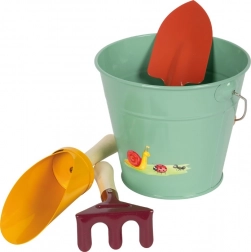Narzędzia obejmują dwie łopatki i jedne grabki, idealne do sadzenia, kopania lub budowania zamków z piasku. Metalowe wiaderko doskonale sprawdzi się do przenoszenia wody, piasku lub ziemi. Dzieci mogą łatwo zabrać ten zestaw wszędzie – do ogrodu, na piaskownicę i na plażę.