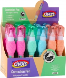Szybkoschnąca biała ciecz skutecznie zakrywa atrament i długopis. Pojemność 7 ml zapewnia długą żywotność i efektywne krycie. Opakowanie zawiera 24 sztuki, kolor dobierany losowo.