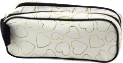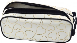 Ten biały piórnik ze złotymi serduszkami zapewnia doskonałą organizację dzięki dwóm oddzielnym przestrzeniom do przechowywania Twoich artykułów piśmienniczych. Z łatwością zmieścisz w nim nie tylko długopisy i ołówki, ale także linijki, gumki i zakreślacze. Oddzielne komory gwarantują lepszą przejrzystość i porządek.