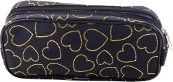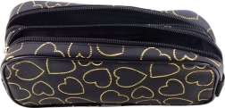 Piórnik czarny ze złotymi serduszkami, dwukomorowy