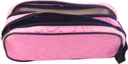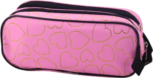 Szkolny piórnik różowy ze złotymi serduszkami, dwukomorowy