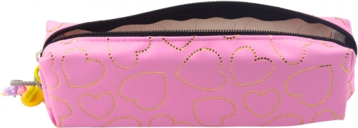 Stylowy różowy piórnik ze złotymi sercami to idealny dodatek do szkoły, na uczelnię lub do biura. Dzięki unikalnemu wzornictwu i praktycznemu rozmiarowi pomieści wszystkie niezbędne artykuły piśmiennicze i z łatwością zmieści się w plecaku lub torebce.