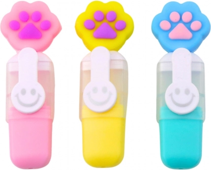 Ten zestaw mini zakreślaczy z uroczą łapką oferuje doskonałe połączenie funkcjonalności i stylu dla młodych użytkowników oraz miłośników kolorowych artykułów papierniczych. Zakreślacze mają długość 8 cm i wyposażone są w dekoracyjny klips w kształcie kolorowej łapki, dzięki czemu są nie tylko praktycznym narzędziem, ale też zabawnym dodatkiem do piórnika.