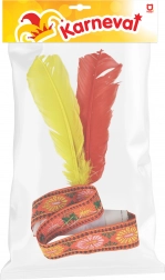 Przedstawiamy piękną indiańską opaskę, idealną dla każdego, kto kocha przygody i lubi bawić się w Indian. Ta opaska jest zdobiona kolorowymi piórami oraz kwiatowymi haftami, które nadadzą twojemu kostiumowi wyjątkowego charakteru.