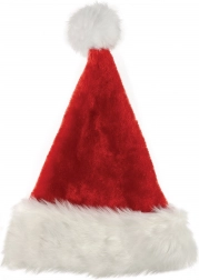 Klasyczna czerwona świąteczna czapka z białym brzegiem i miękkim pluszowym materiałem to idealny dodatek na okres świąteczny.