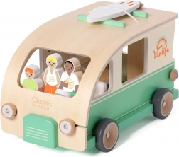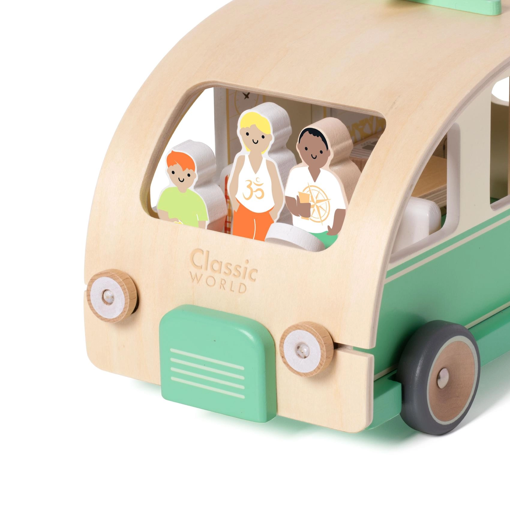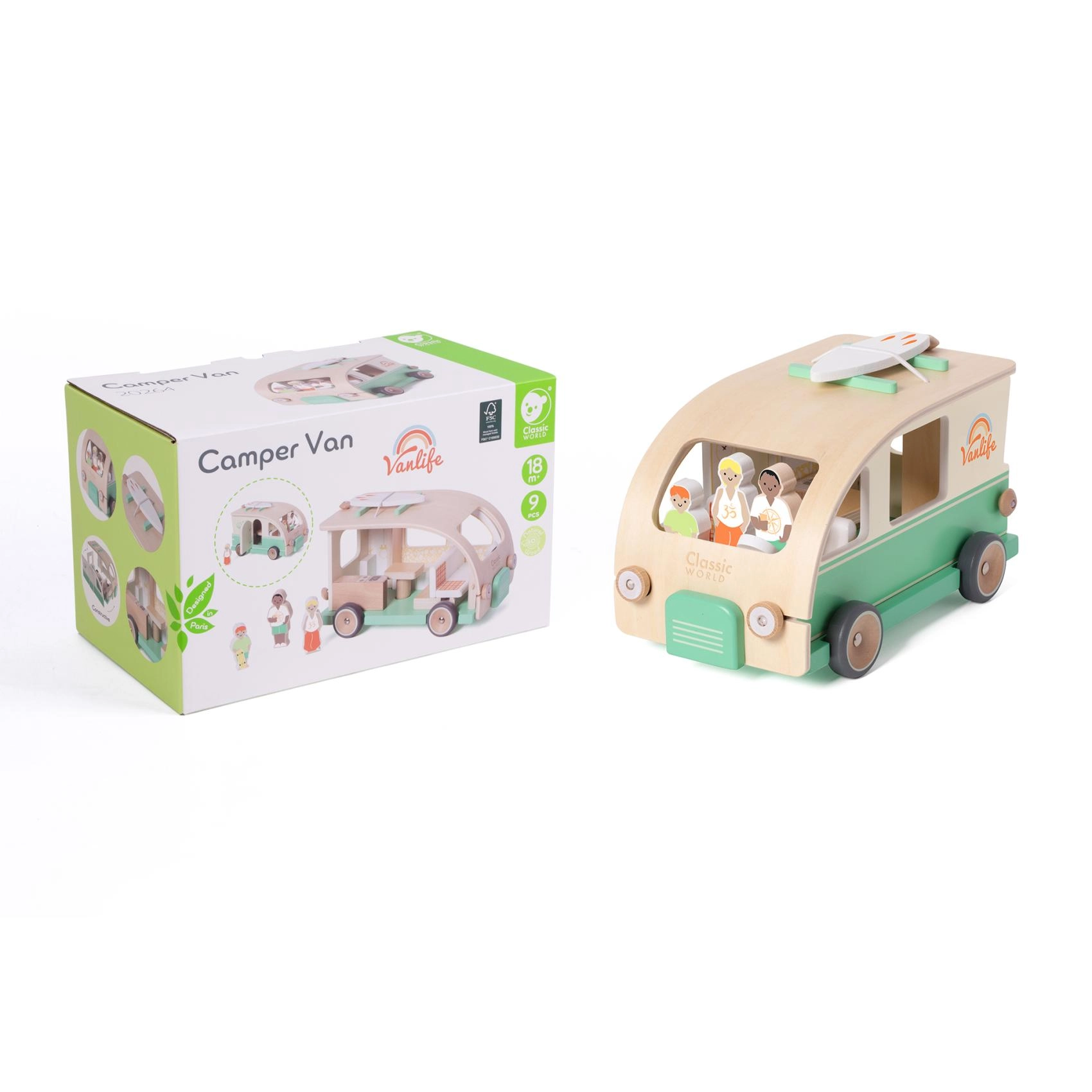 Drewniana układanka Kamper to idealna zabawka wspierająca rozwój Twojego dziecka. Zabawa różnymi kształtami i figurkami, które dzieci dopasowują do odpowiednich otworów, rozwija małą motorykę, logiczne myślenie oraz wyobraźnię. Zabawka została zaprojektowana z myślą o zabawie połączonej z nauką.