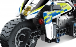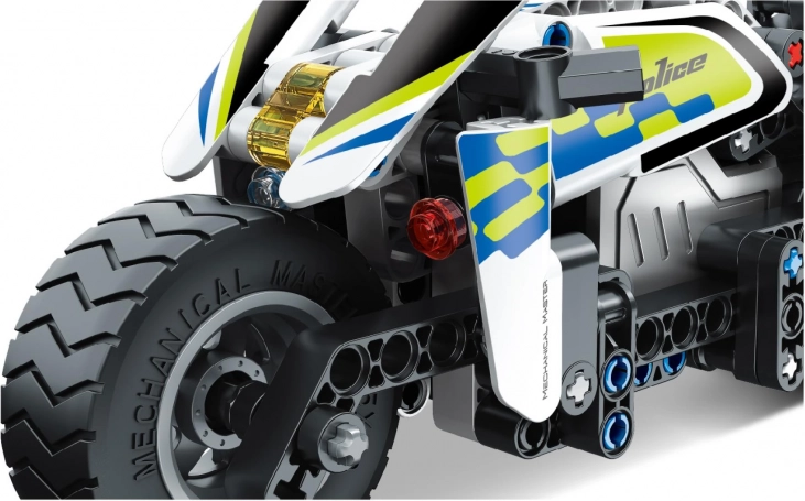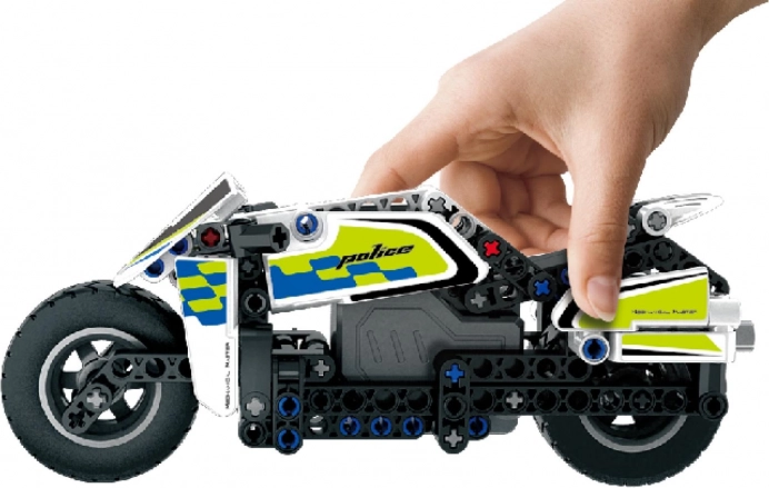 Model zawiera 193 wysokiej jakości plastikowe elementy, z których złożysz realistyczny policyjny motocykl gotowy na każdą akcję. Jasna instrukcja i sprytnie zaprojektowane części sprawiają, że budowanie jest przyjemne i dostępne także dla młodszych konstruktorów.