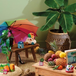 Drewniane autko z klaksonem w kształcie lwa przynosi radość i zabawę do zabawy Twojego dziecka. Dzięki klaksonowi i kolorowym detalom rozwija zdolności manualne i wyobraźnię.