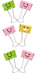 Dzięki temu kolorowemu zestawowi spinaczy biurowych możesz pewnie spiąć do 145 kartek papieru. Dzięki solidnej metalowej konstrukcji i sprężystemu mechanizmowi nadają się do wielokrotnego użytku. Spinacze występują w różnych kolorach, co ułatwia sortowanie materiałów. Oryginalny design z motywem buźki świetnie sprawdzi się także w notesie, planerze lub zestawie kreatywnym.