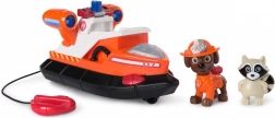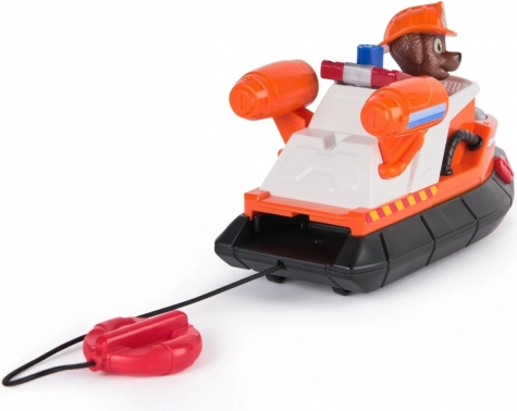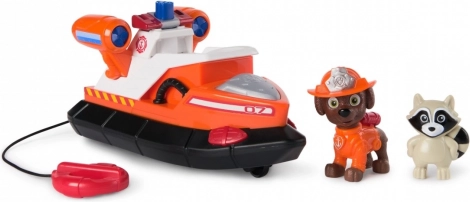 Zuma, mający ponad 5 cm wysokości w swoim strażackim stroju, jest gotów uratować sytuację. Łódź strażacka jest wyposażona w koło ratunkowe przymocowane do linki, co zapewnia mnóstwo akcji i przygód. Zumie dodaje uroku także mały szop pracz, którego można uratować. Dzieci mogą nacisnąć przycisk, aby wystrzelić koło ratunkowe, do którego szop idealnie pasuje. Dzięki oryginalnemu stylowi Psi Patrolu zabawka wygląda jak w serialu, inspirując dzieci do przeżywania przygód.