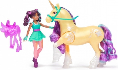 Zwiedzaj świat fantasy z tym zestawem zawierającym 11‑centymetrową lalkę Sophię z realistycznymi detalami i ruchomymi stawami. Jednorożec Gwiazda ma 12 cm i jest ozdobiony magicznymi detalami, w tym przezroczystym, przypinanym siodłem.
