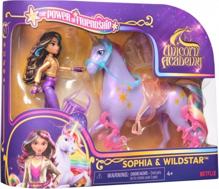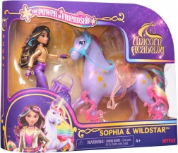Zestaw figurek Akademia Jednorożców: Małe laleczki Zofia i Gwiazda oferuje wspaniałą zabawę. Laleczka Zofia, o wysokości 11 cm, wyróżnia się realistycznymi i dopracowanymi detalami, w tym metalicznymi znakami mocy oraz 7 punktami artykulacji do dynamicznych póz.