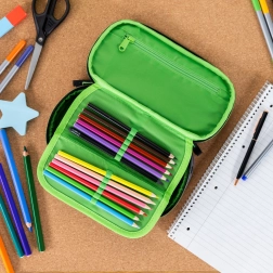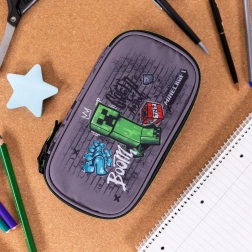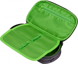 Kompaktowy szkolny piórnik Baagl inspirowany grą Minecraft oferuje przestronną główną komorę i podwójną, rozkładaną klapą na przybory do pisania i drobne przedmioty.