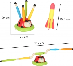 W skład zestawu wchodzi: biedronka (główna część), plastikowy rozdzielacz, różne długości i rodzaje rurek do skakania, pompka nożna, obręcze do rzucania, strzałki, pilot zdalnego sterowania i montażowy śrubokręt. Wszystko starannie zaprojektowane do bezpiecznej i stymulującej zabawy.