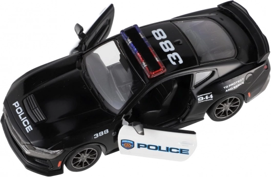 Stylowy radiowóz dla małych kierowców i kolekcjonerów! Szczegółowo wykonany model FORD MUSTANG DARK HORSE 2024 w edycji Police w skali 1:38 oferuje metalowe wykonanie, sprężynowy napęd (pull-back) do szybkiej jazdy do przodu oraz otwierane drzwi dla realistycznej zabawy. Długość pojazdu 13 cm, odpowiedni dla dzieci od 3 lat.