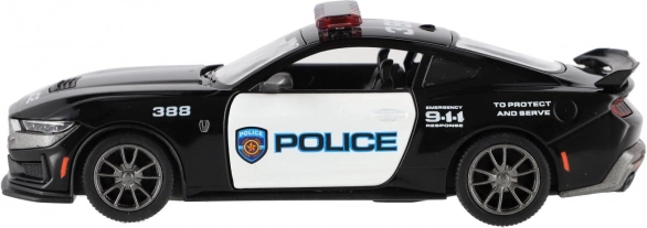 Przeżyj akcję w policyjnych barwach z precyzyjnie odwzorowanym modelem FORD MUSTANG DARK HORSE 2024. Ten metalowy sportowy samochód w skali 1:38 jest idealny do zabawy i do ekspozycji w kolekcji, dzięki autentycznym detalom nadwozia i funkcjonalnym elementom.