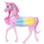 Magiczny jednorożec Barbie przemieni każdą zabawę w kolorowe widowisko pełne świateł, dźwięków i muzyki. Wystarczy delikatnie pogłaskać go po głowie, aby uruchomić pokaz, a dzięki trzem kolorowym przyciskom stworzysz aż 20 unikalnych kombinacji – od subtelnych błysków po efektowne choreografie świetlne.