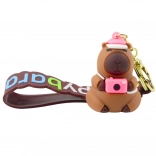 Brelok przedstawia sympatyczną kapibarę w czapce i z różowym aparatem, precyzyjnie wykonaną z miękkiego, elastycznego i trwałego silikonu. Materiał jest przyjemny w dotyku i odporny na codzienne użytkowanie. W zestawie znajduje się łatwa do przypięcia elastyczna zawieszka z kolorowym napisem „capybara” oraz solidny karabińczyk i klasyczne kółko. Dzięki temu brelok jest funkcjonalny i łatwy w mocowaniu.