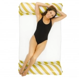 Ergonomiczny design: Połączenie dwóch nadmuchiwanych poduszek z elastyczną i oddychającą nylonową siatką zapewnia półzanurzoną pozycję, w której ciało jest częściowo zanurzone w wodzie, co umożliwia naturalne chłodzenie i komfortowe opalanie.